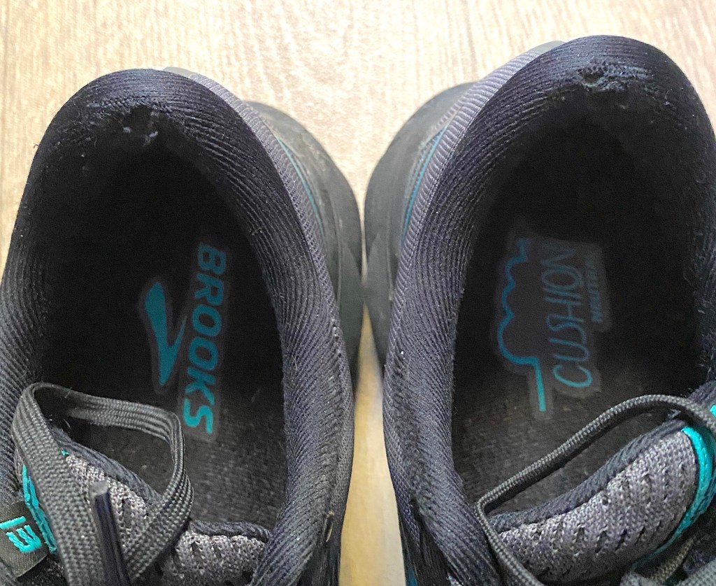 I returned my pair of Ghost 13 and got a pair of 14 instead, which I actually enjoyed even more than the 13. I was wondering if the extra padding in the heel of the 14 would resolve this issue, but it is the same sort of fabric lining. I also had the Ghost 12 before this (regular edition) and never had any issues with that model, nor any other of the Brooks shoes that I’ve tried in the past, although the lining in those was different. At first I thought the 14 would last longer and that’s also what Brooks told me when I asked, that they knew about the issue with the 13 that some people experienced and that they now had resolved the issue by changing the shape of the heel counter and that it should not be an issue anymore. But after about 120 kilometers in the 14, the same thing happened. Also saw someone with the Brooks GTS21 have this same issue. Again on top of the heel counter and also inside it a bit, but the fabric tears on top of the heel counter first.